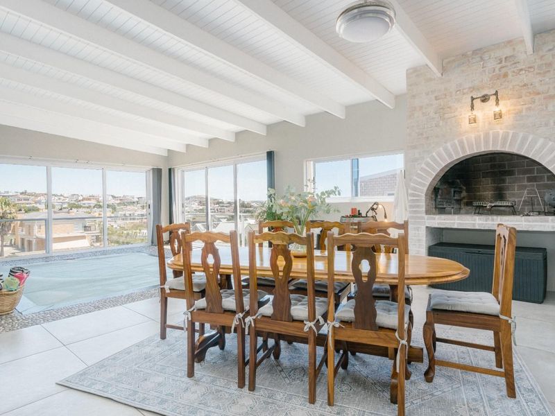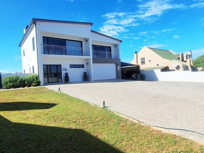 Walk to Sandbaai Beach and the Yacht Club from this Myburgh Park home — perfect for entertaining with braai room, irrigated garden and modern kitchen; five en-suite bedrooms.