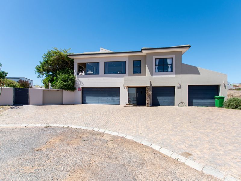 Wake to sweeping lagoon views in Myburgh Park, Langebaan — coastal tranquillity and wildlife from private balconies. Five bedrooms, five baths and four garages for family convenience.