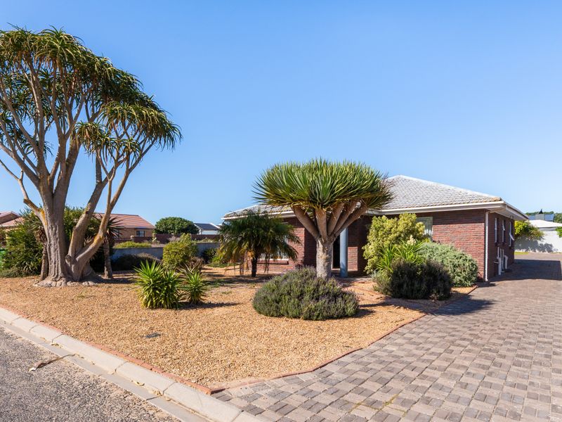 Embrace relaxed coastal living in Langebaan, tucked behind a greenbelt with second-floor lagoon views. Private walled garden, indoor braai and patio — three bedrooms, three bathrooms, double garage.
