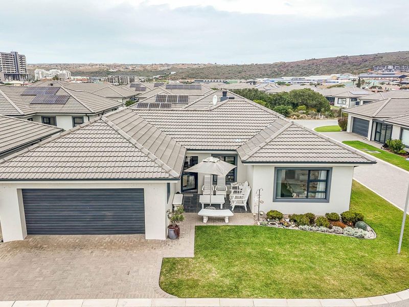 Coastal entertaining lifestyle in Diaz Beach with seamless indoor-outdoor flow and an ironwood-lined indoor braai — designer kitchen, four bedrooms, 3.5 baths, and double garage.
