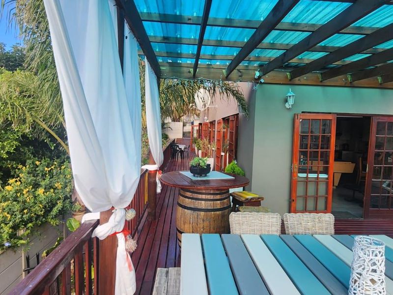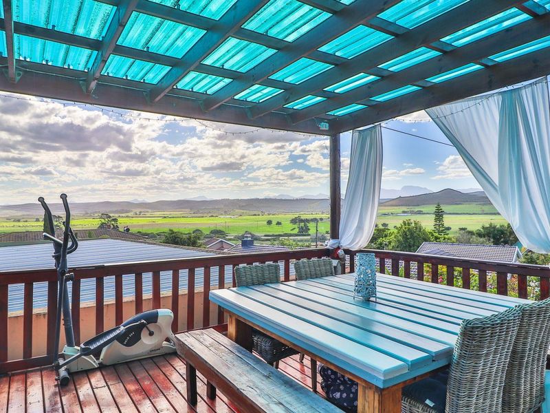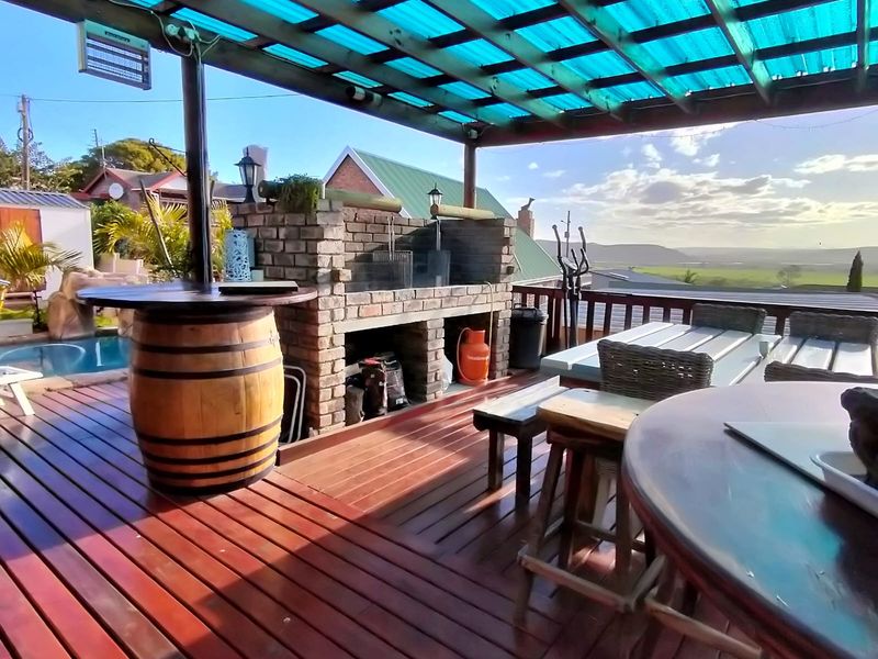 Entertainer's retreat in FRAAIUITSIG, Klein Brak River — expansive 64 m2 deck with splash pool and valley views, built-in braai and income-generating bachelor flat.