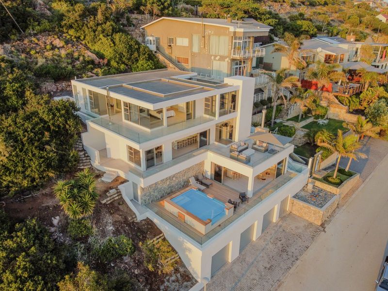 Savour elevated coastal living in Mossel Bay Central, steps from the lighthouse and Point, with panoramic ocean and Outeniqua Mountain views and a poolside entertainment level; includes four bedrooms.