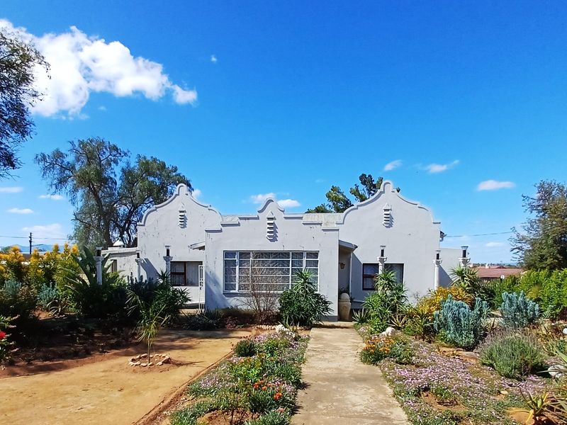 Embrace relaxed Karoo living on a double-sized corner stand with subdivision potential; enjoy high ceilings, thick walls, braai room and undercover stoep — three bedrooms and two bathrooms.