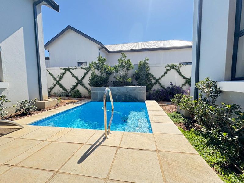Relaxed indoor-outdoor living in Klein Parys’s Bergenhof Village, Paarl—open-plan home with modern kitchen, covered patio and built-in braai, landscaped garden; three bedrooms, double garage.