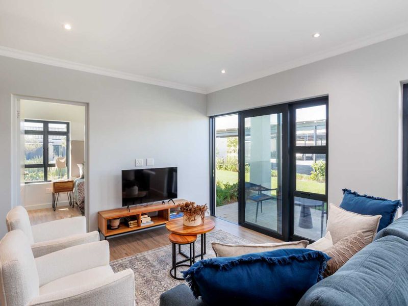 Effortless indoor-outdoor entertaining in Val de Vie Estate, Paarl-Franschhoek Valley — north-facing corner home with large garden and pool, walking distance to lakes and play parks.