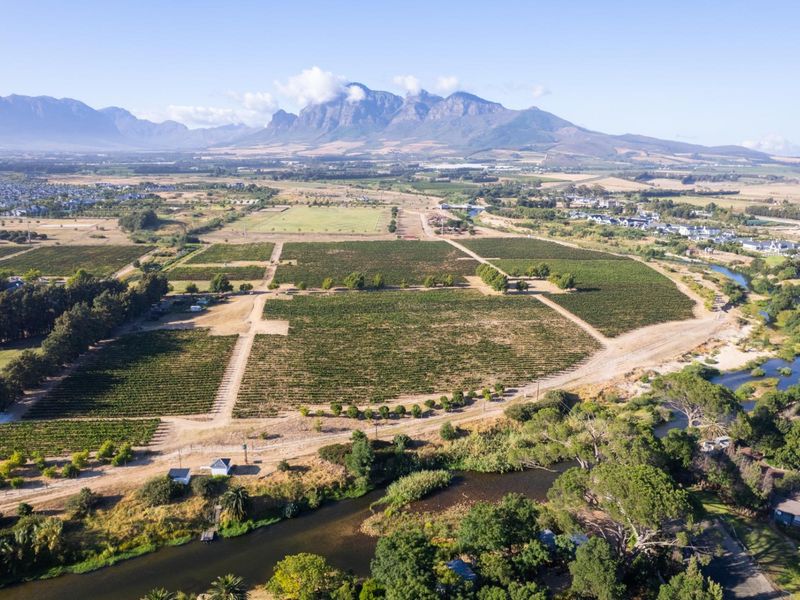 Create a private Winelands retreat within Val de Vie Estate, framed by the Simonsberg and Franschhoek mountains, with 27 hectares, Berg River frontage and established vineyard potential.