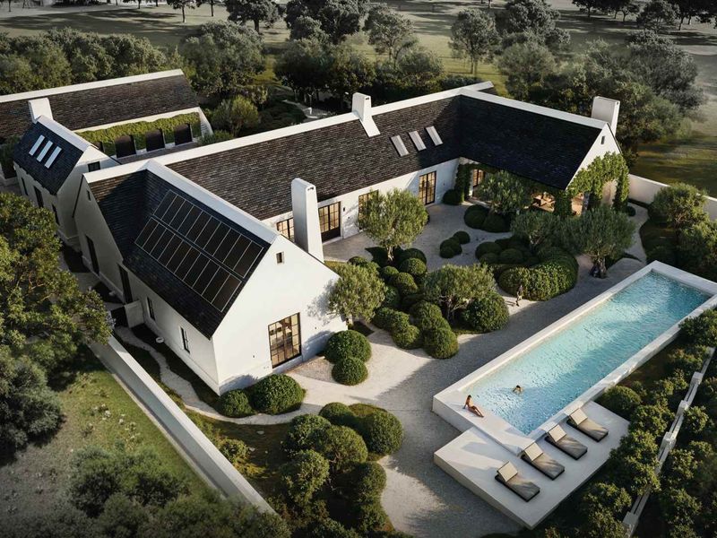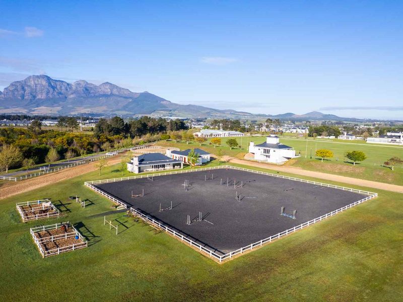 Front-row polo lifestyle in Val de Vie Estate, set among manicured gardens and mountain views; 1049sqm stand overlooks the Pavilion Polo Field, steps from Back's Deli and stables.