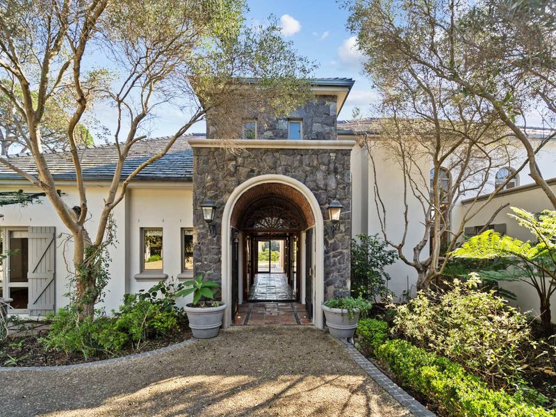 Polo-side family living in Val de Vie Estate, steps from the Champion's field, lakes and vineyards — expansive covered patio with built-in braai for entertaining; five bedrooms, 4.5 baths.