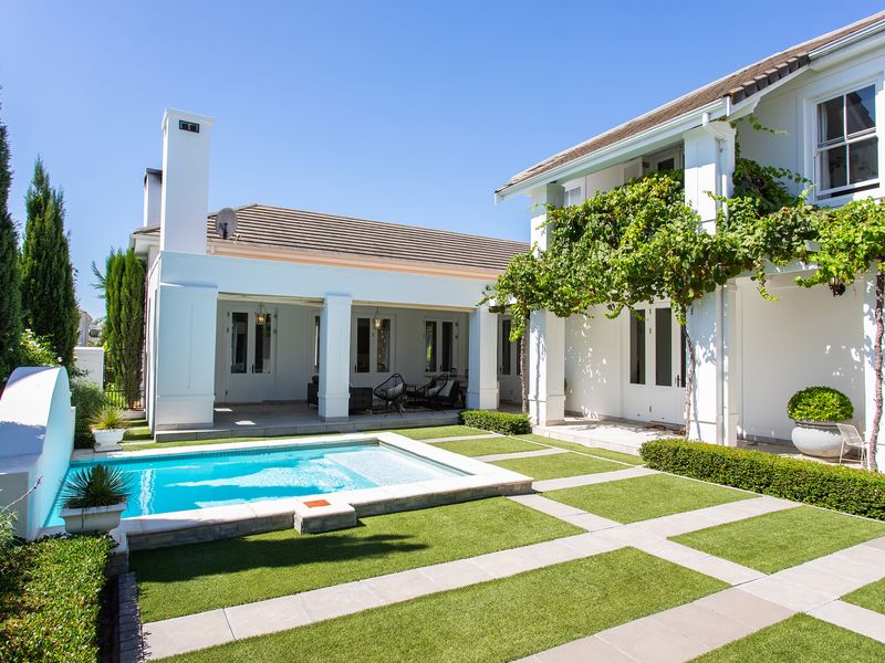 Effortless Winelands living in La Vue — elegant entertaining home with a climate-controlled wine cellar, manicured garden and 8m lap pool; four bedrooms, 4.5 baths.