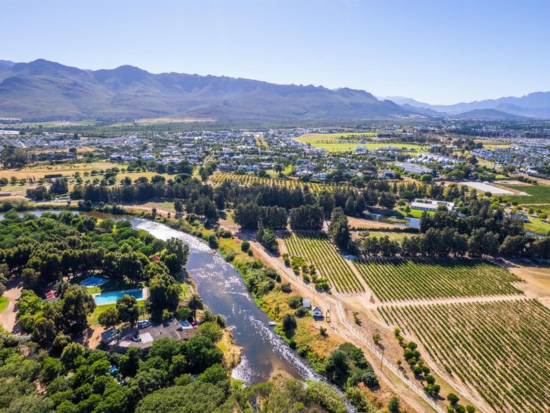 Experience expansive Cape Winelands living in Val de Vie Estate, framed by Simonsberg and Franschhoek views, with 27 hectares, Berg River water rights and scope for vineyards or equestrian facilities.