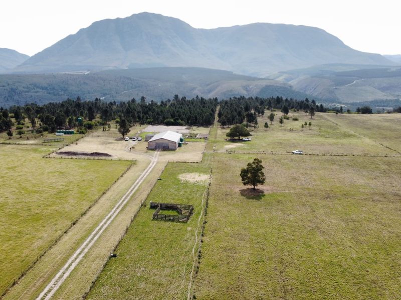 Experience self-sufficient farm life near the Langeberg, 26 km from Riversdale — 747 Ha with 470 Ha fenced for game, two homes (5 beds, 3 baths).