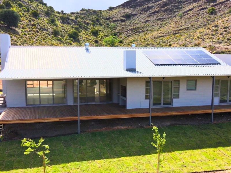 Create an eco-retreat on 239ha of Karoo highlands, 30 minutes from Riversdale, with sweeping Karoo views from an expansive Garapa deck and a modern four-bed, four-bath home.