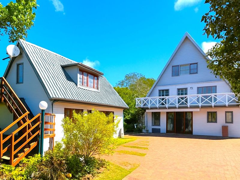 Relaxed Garden Route lifestyle steps from Sedgefield lagoon and Myoli Beach, with two self-contained 1-bed income apartments, gourmet kitchen, wrap-around patio, pool and double garage.