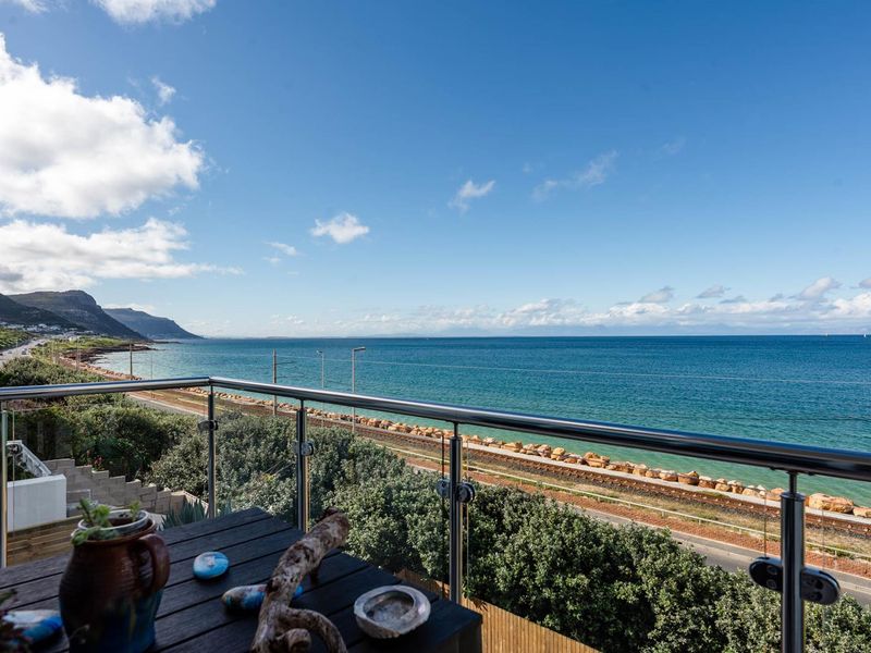Seaside retreat above Simon’s Town, ideal for relaxed coastal living with uninterrupted Simon’s Bay views, grape-covered pergola patio and loft studio — classic two-bedroom, two-bath cottage.