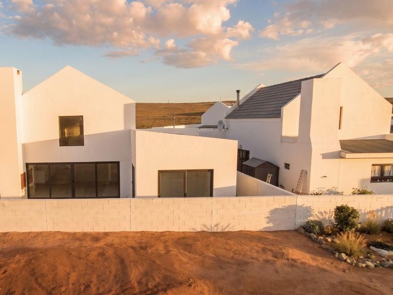 Effortless coastal entertaining in Britannia Beach Estate, moments from St Helena Bay shoreline, featuring industrial finishes, open-plan living and patio with built-in braai — two bedrooms, 2.5 baths, loft.