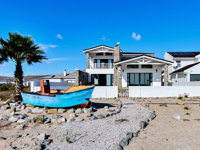 Beachside living in Sandy Point Beach Estate, moments from St Helena Bay shorelines — modern open-plan home with private pool and braai area; three bedrooms, two baths, double garage.