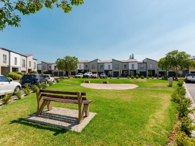 Relaxed Strand lifestyle with low-maintenance townhouse living, private braai courtyard for entertaining, light-filled open-plan kitchen/living and communal gardens — three bedrooms, 2.5 bathrooms, single garage.