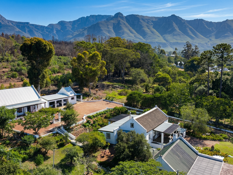 Embrace a hospitality lifestyle in a private South African retreat beneath the Langeberg Mountains, with a saltwater pool — nine bedrooms and a turnkey 4-star guesthouse.