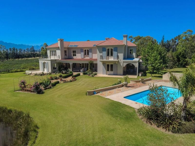 Exclusive country retreat in Tulbagh Valley, framed by the Obiqua, Saronsberg and Winterhoek ranges. Vineyard-ready 53ha estate with panoramic mountain views, four bedrooms and five bathrooms.