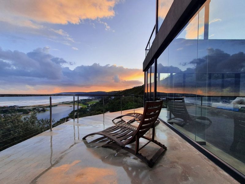Commanding panoramic views over the Indian Ocean and lagoon from a private, elevated 939 m² stand atop Constantia Kloof — minutes from Wilderness village, beaches and national park.