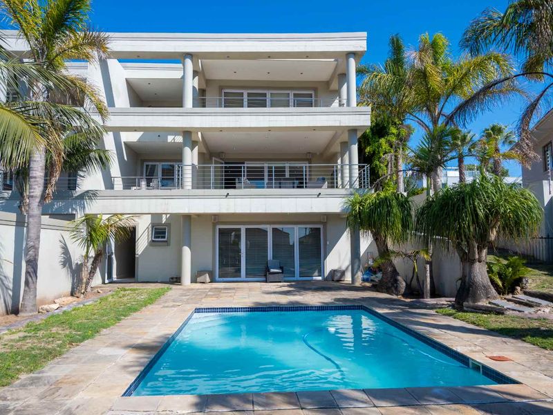 Coastal family entertainer with sweeping sea views and relaxed beachfront access, close to schools and malls. Features undercover braai, sparkling pool and garden, four bedrooms, four baths, double garage.