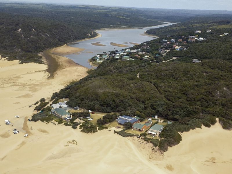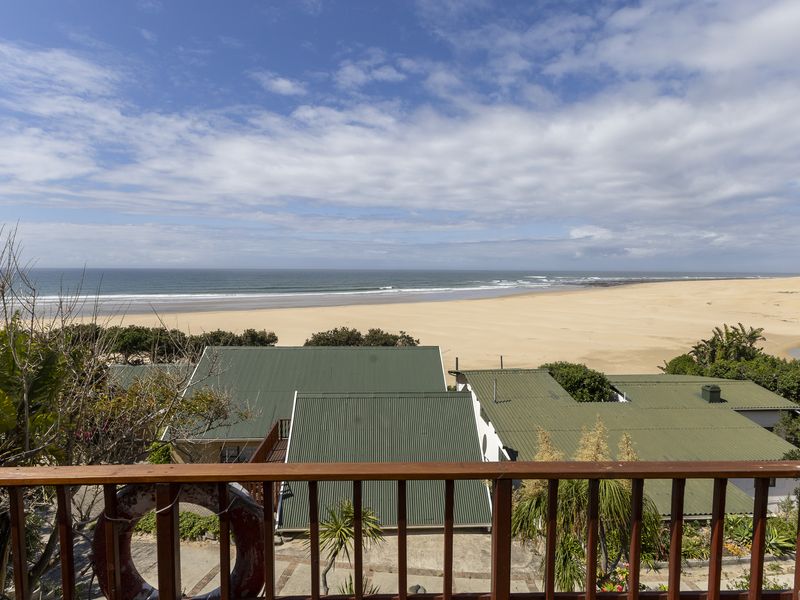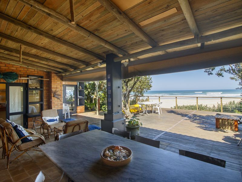 Private coastal retreat with exclusive beach and lagoon access between Mgwalana and Mpekweni, set among Milkwood trees with a large ocean-view wooden deck — five bedrooms, four baths, double parking.