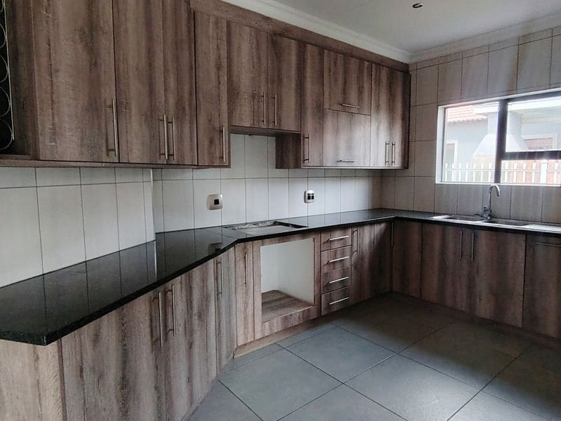 Relaxed family living in Mandela View with secure streets, communal park and basketball court; modern glossy kitchen, sunlit lounges with built-in braai, three bedrooms, two baths, double garage.