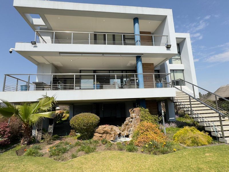 Wake up to riverfront sunrises with private jetty and boathouse, expansive patios and two entertainment braais on exclusive estate; five bedrooms, four ensuites and double garage.