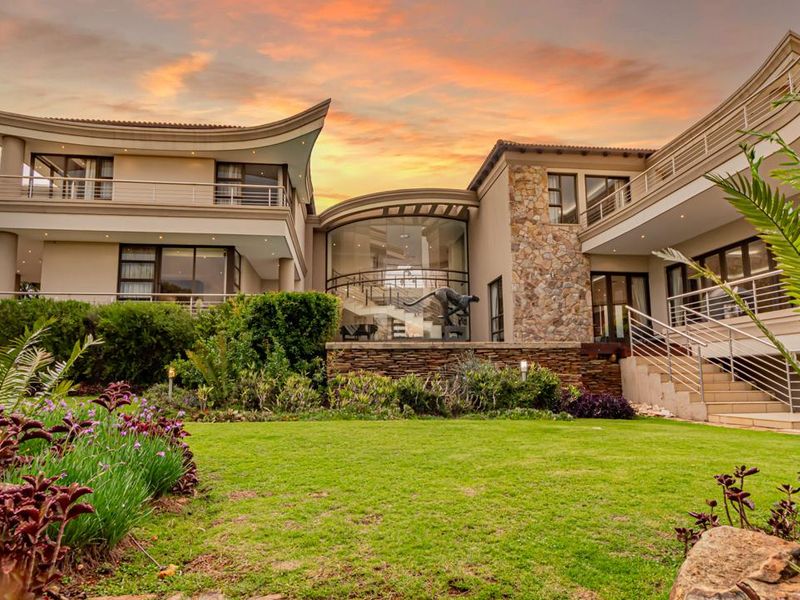 Embrace refined living in Meyersdal Eco Estate with nature trails, clubhouse and panoramic sunset views; dramatic glass-floor TV lounge, wraparound patio and pool; five bedrooms, six baths, five-car garage.