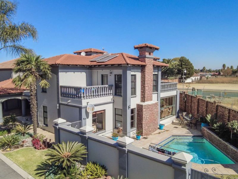 Resort-style living in Monte Cristo Estate, moments from the clubhouse and tennis courts — poolside entertaining with built-in braai, expansive double-volume entrance, five beds, four baths, triple garage.