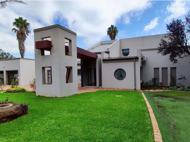 Sustainable family living in a peaceful leafy setting, with a lush garden, pool, and solar/borehole systems — five bedrooms, 4.5 baths and six-car garage.