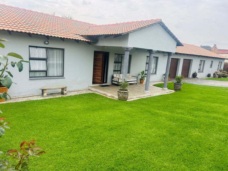 Entertain effortlessly in a tranquil suburban setting with a covered braai-and-bar patio flowing to a private garden and pool; includes a bachelor flat and three bedrooms, two bathrooms.