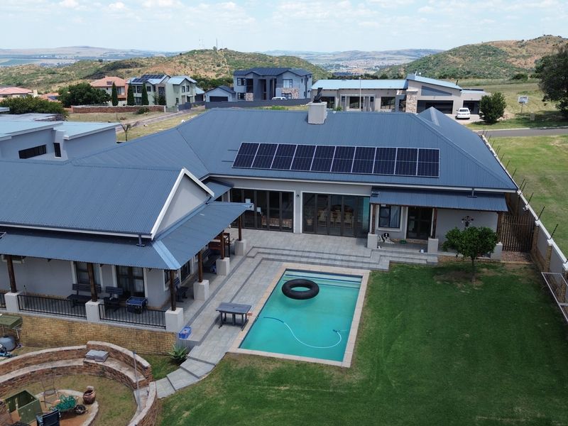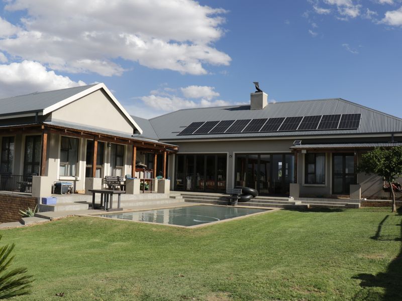 Entertainer's retreat in Berg 'n Dal estate, Heidelberg — secure country-lifestyle living with enclosed braai flowing to pool and patio. Four bedrooms, 4.5 bathrooms and double garage.