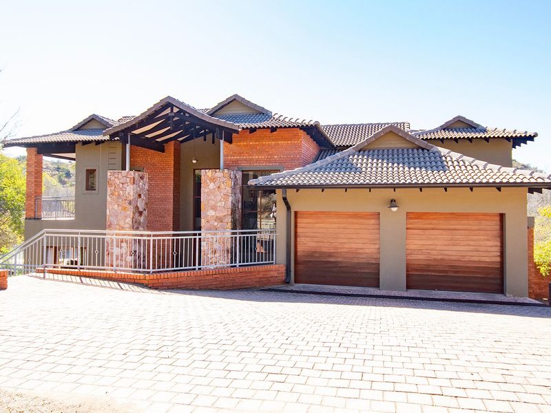 Entertain effortlessly with indoor-outdoor living framed by Suikerbos Koppies views; classical double-volume family home features wall-to-wall stacker doors, built-in braai, four bedrooms and double garage.