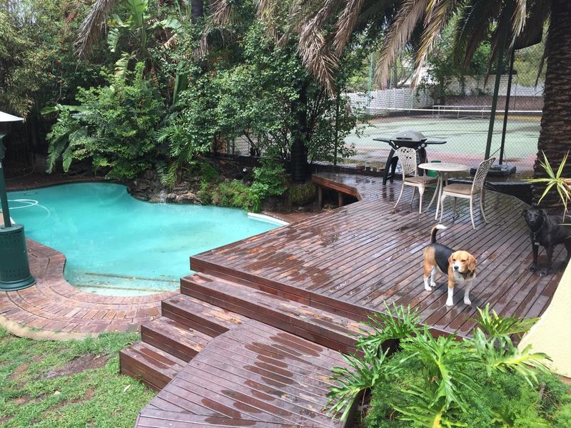 Entertainer's haven in a quiet, secure suburb — huge 2,782 m² stand with thatch boma and built-in Jetmaster braai, plus sparkling pool; four bedrooms, 2.5 baths.