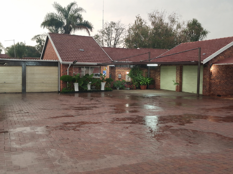 Relaxed family living with a lush established garden and sunny patio in Dunnottar, offering a well-equipped kitchen, three bedrooms, two bathrooms, and four tandem garages and three carports.