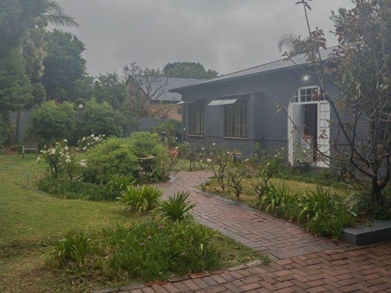 Entertainer's dream with leafy privacy and easy access to schools and Pretoria University, featuring a covered patio and pool, separate guest suite for Airbnb, four beds, three baths, double garage.