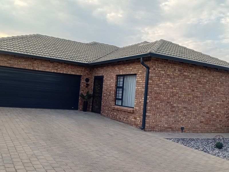 Low-cost, self-sufficient living in a secure enclave with 5kVA inverter and SUNSK backup battery, flowing lounge-dining-braai layout, double automated 42sqm garage, three bedrooms, two bathrooms.