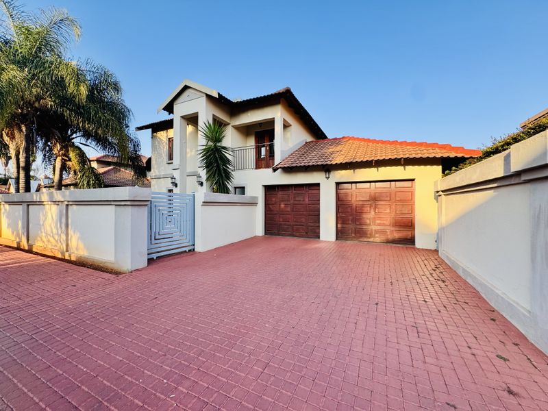 Entertainer's double-story home in Green Acres Estate with open-plan kitchen and scullery flowing to a covered patio with built-in braai and private garden. Study, staff-room flatlet option; three bedrooms, 3.5 baths.