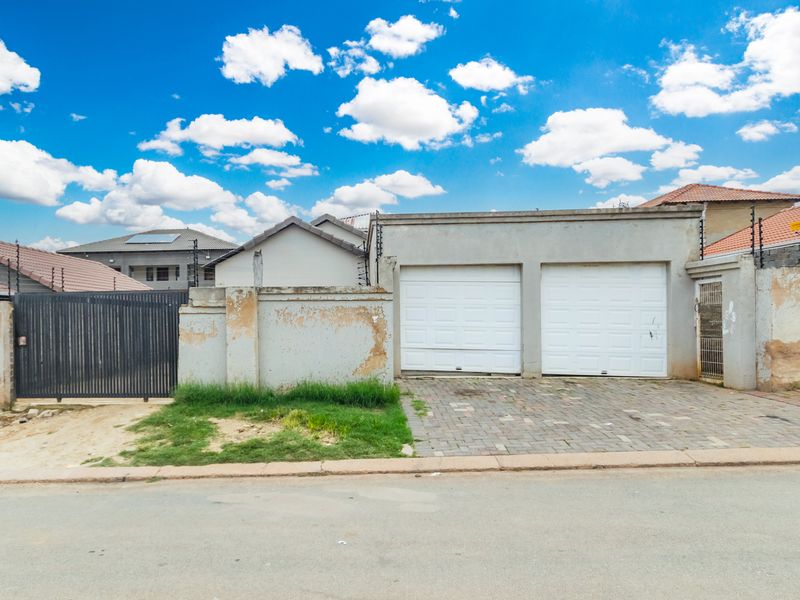 Enjoy township living in Cosmo City Extension 3, heart of Kasi, ideal for family entertaining with a built-in braai patio and balconies, five bedrooms, five bathrooms, garage.