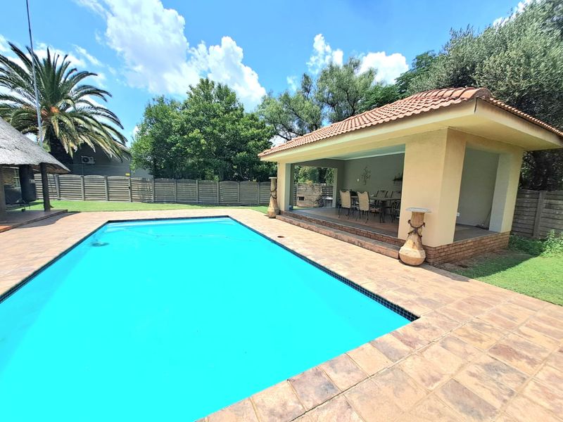 Entertain year-round in a family-friendly, peaceful tree-lined neighbourhood with a private pool and lapa, multiple living areas and kitchen opening to the braai room — four bedrooms, two bathrooms.