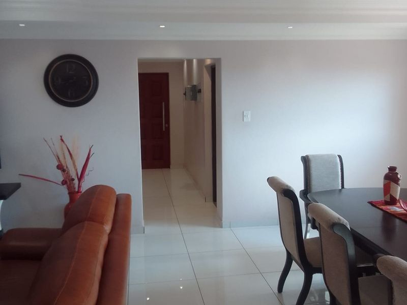 Executive family living 10 minutes from Randfontein, close to amenities, in an Australian-inspired home with manicured garden and covered patio with built-in braai; four bedrooms, two baths, double garage.