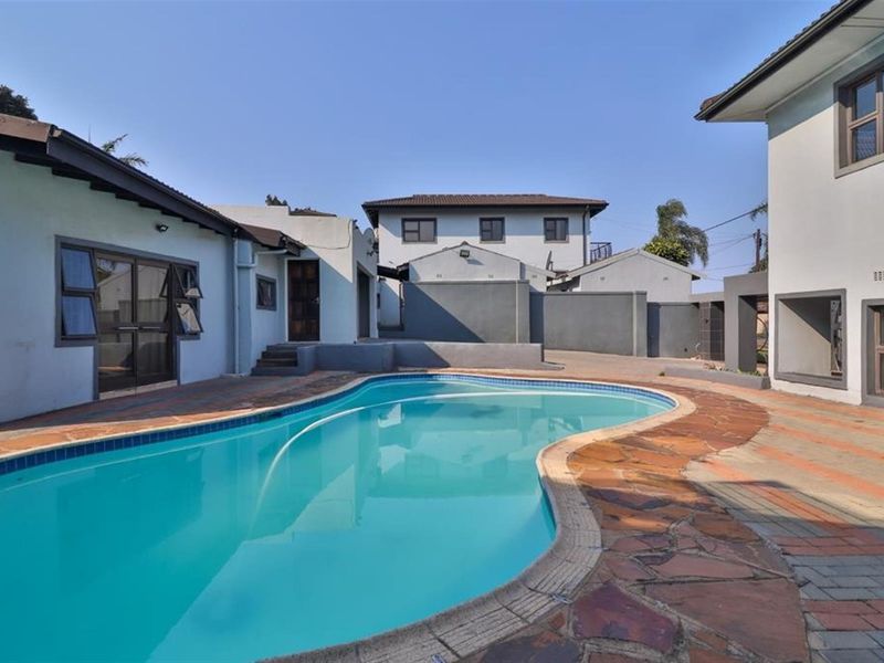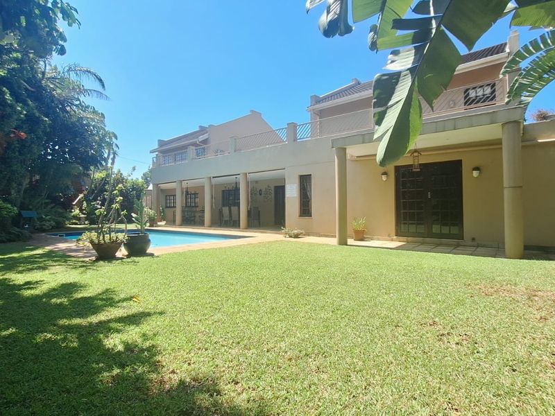 Operate a thriving hospitality retreat in Durban North, steps from Margaret Maytom Avenue and Umhlanga, with pool, bar and entertainment area — ten bedrooms, ten bathrooms, double garage.