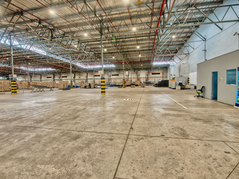 Effortless high-capacity logistics and uninterrupted operations in Riverhorse Valley, Durban, with high clear height, on-site generator and 10,000 sqm warehouse — secure, modern offices overlooking the floor.