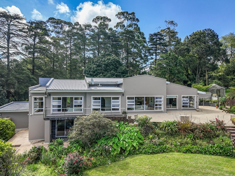Elevated country living with sweeping valley views and terraced gardens, perfect for relaxed entertaining. Spacious kitchen and separate studio cottage for guests — three bedrooms, two bathrooms, triple garage.