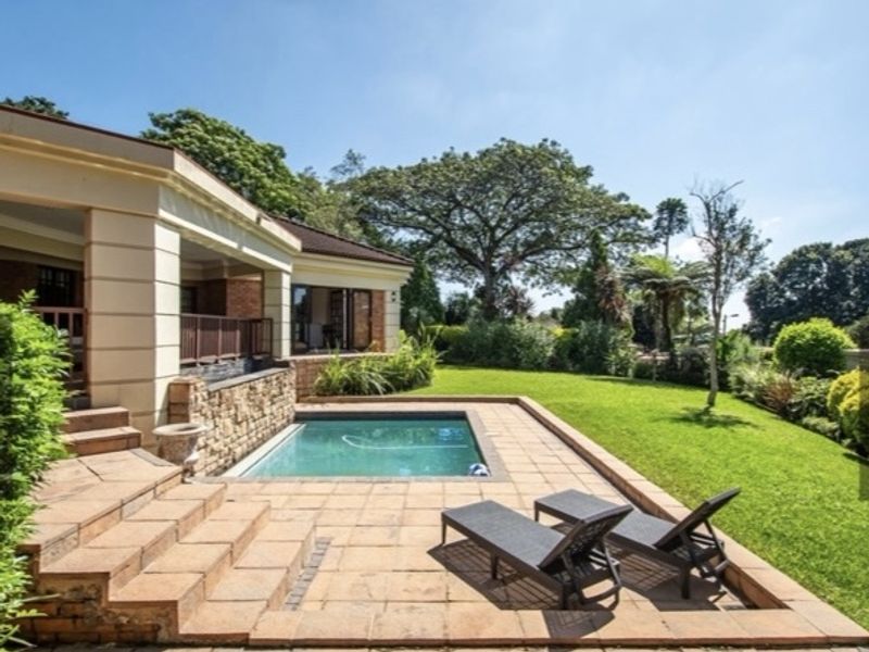 Private, secure estate living in Kloof's sought-after Blue Zone at Clovelly Estate, with seamless indoor–outdoor entertaining, sparkling pool, manicured lawn, and five bedrooms plus double garage.