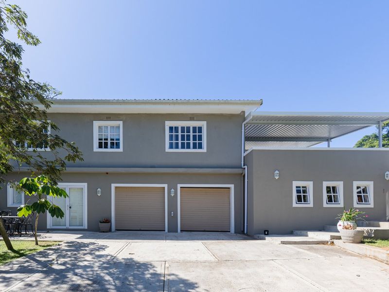 Entertainer's coastal retreat on Pennington's South Coast with uninterrupted 180° ocean and breaker views, expansive pine entertainment deck for braai evenings — 9 bedrooms, 7 bathrooms, 4 garages.