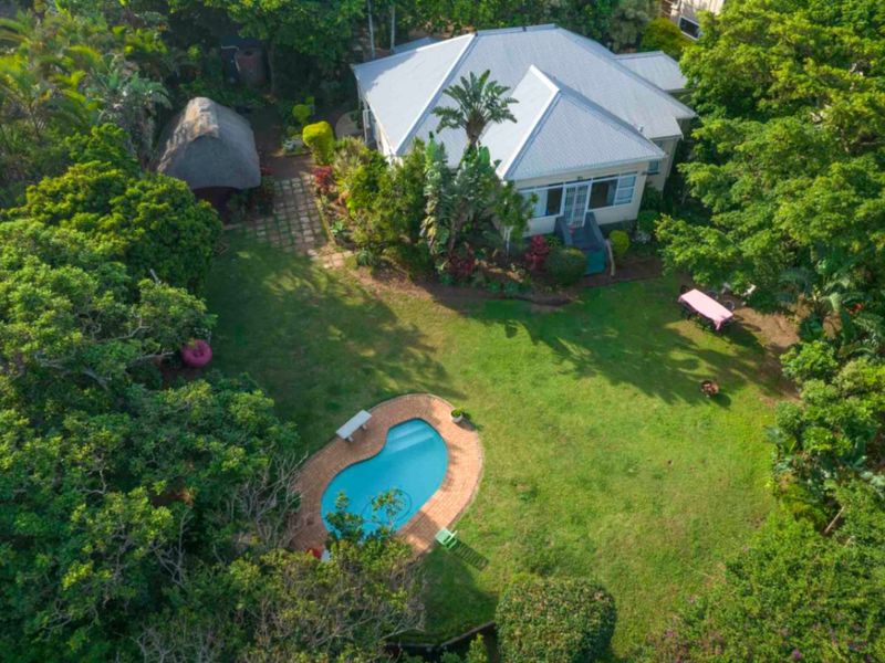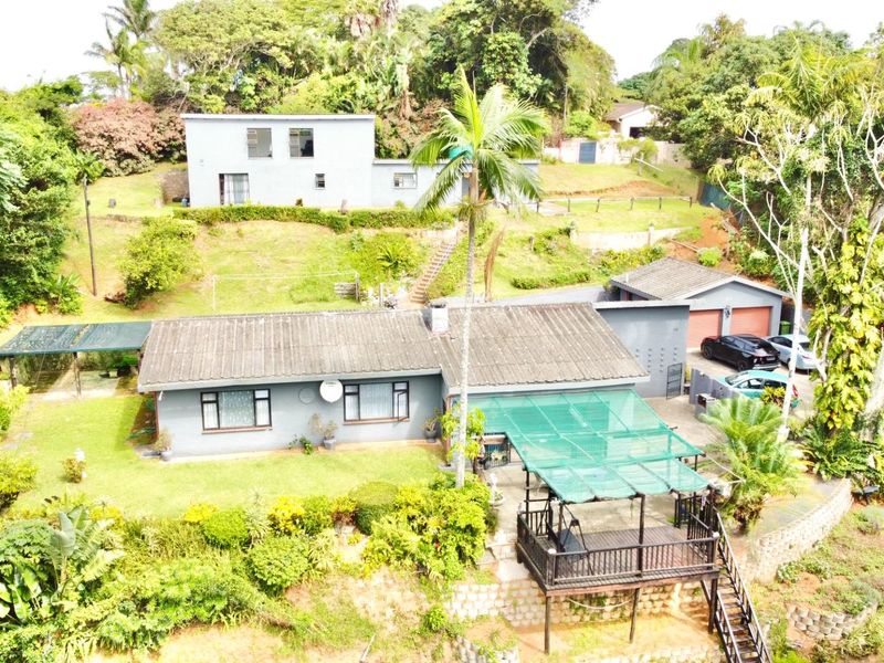 Enjoy relaxed coastal-country living in elevated Umtentweni, moments from beaches, on a sprawling 7028 m² erf with pool, separate two-bedroom flat and three garages.