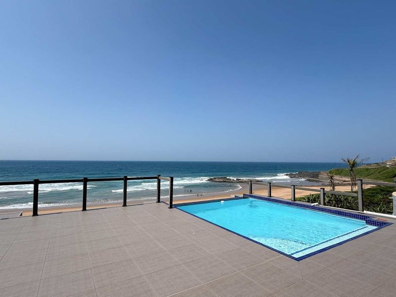 Live beachfront on Tinley Manor’s unspoiled KZN North Coast, enjoying panoramic ocean views and direct beach access — six en-suite bedrooms and a double garage.