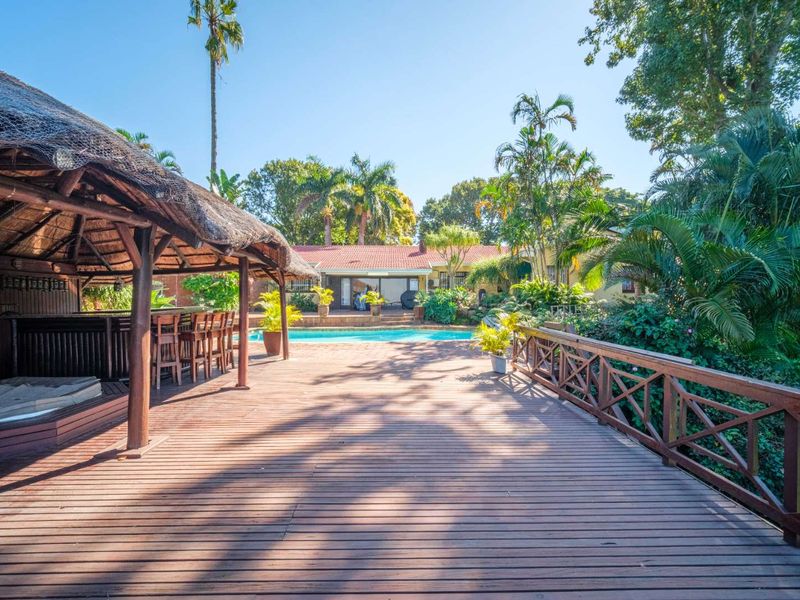 Resort-style living and effortless entertaining in Atholl Heights, Westville, minutes from UKZN and the M19. Features 100sqm wooden entertainment deck, pool, jacuzzi, and four bedrooms, four bathrooms, and four garages.